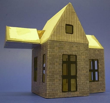 This project is not quite a "glitterhouse," because the walls and roof are finished with printed graphic paper instead of paint and glitter. However most of the construction is very similar to building a glitterhouse, so we will refer to articles on glitterhouses in general from time to time.