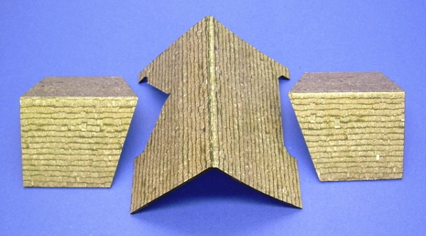 - Cut out the roof pieces. Score a fold line for the peak. Put the peak of each roof section on the high point of the section to check the fit. You may have to make more than one roof to get best fit.
